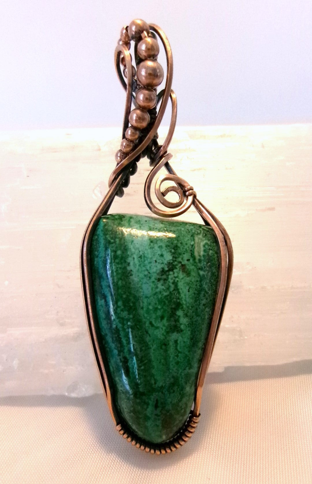 Chrysocolla gemstone copper wire wrapped crystal pendant with copper accent beads