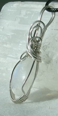 Rainbow Moonstone gemstone sterling silver wire wrapped crystal pendant