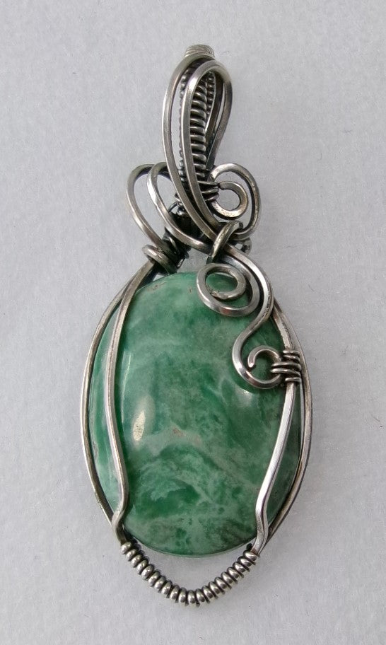 Variscite gemstone sterling silver wire wrapped crystal pendant